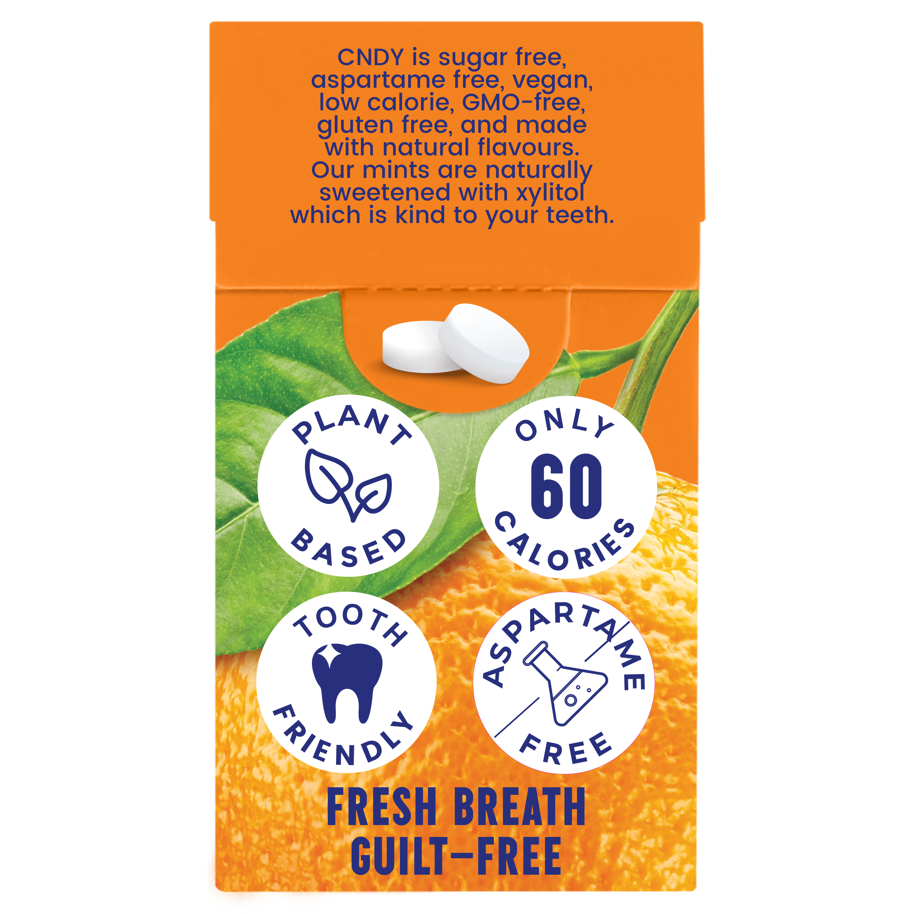 Orange flavoured mints provides a mega burst of tangy freshness straight to your mouth. All of the fun & flavour without any of the artificial ingredients commonly found in mints. Our products are made with natural, sugar free, vegan, gluten-free, soy-free, GMO-free ingredients.